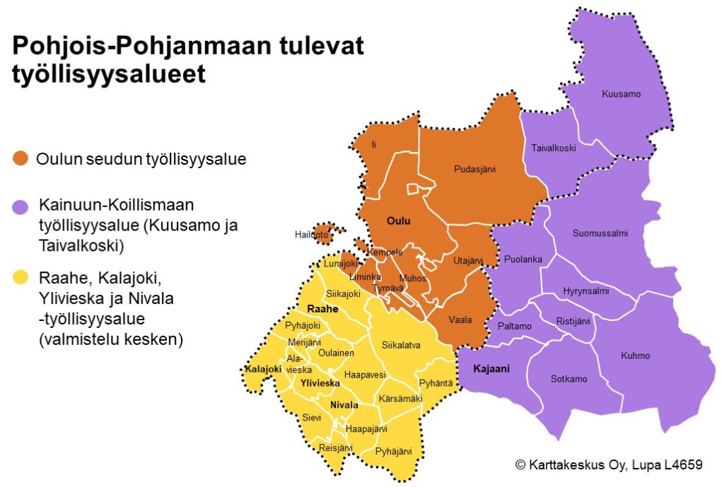 Oulu oli koko ajan työntekijöiden tärkein sijoittumiskunta. Se vastaanotti vuosittain 70–80 prosenttia kaikista työntekijän oleskeluluvista. Hoiva ja siivous painottuivat erityisesti Oulussa ja Kuusamossa, kun taas Sievi, Taivalkoski ja Hailuoto keräsivät suuren osan metsänhoidon ja luonnontuotealan työntekijöistä. Rakennusalan työntekijöitä suuntautui eniten Ouluun ja Raaheen, joissa kansainvälisten teknisten asiantuntijoiden ja ammattityöntekijöiden tarve oli suurin.