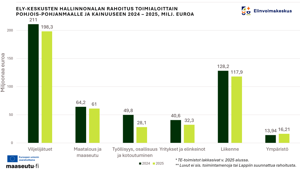 - Viljelijätukia maksettiin Pohjois-Pohjanmaalle ja Kainuuseen vuonna 2025 lähes 200 miljoonaa euroa